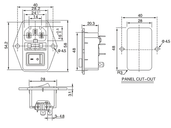 品字帶單保險帶開關-C14